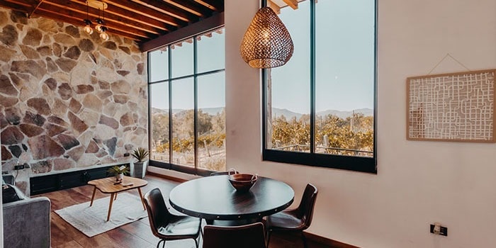 1 cama king size, 1 sofá cama, comedor, tina de baño, vista al viñedo, balcón con fogatero