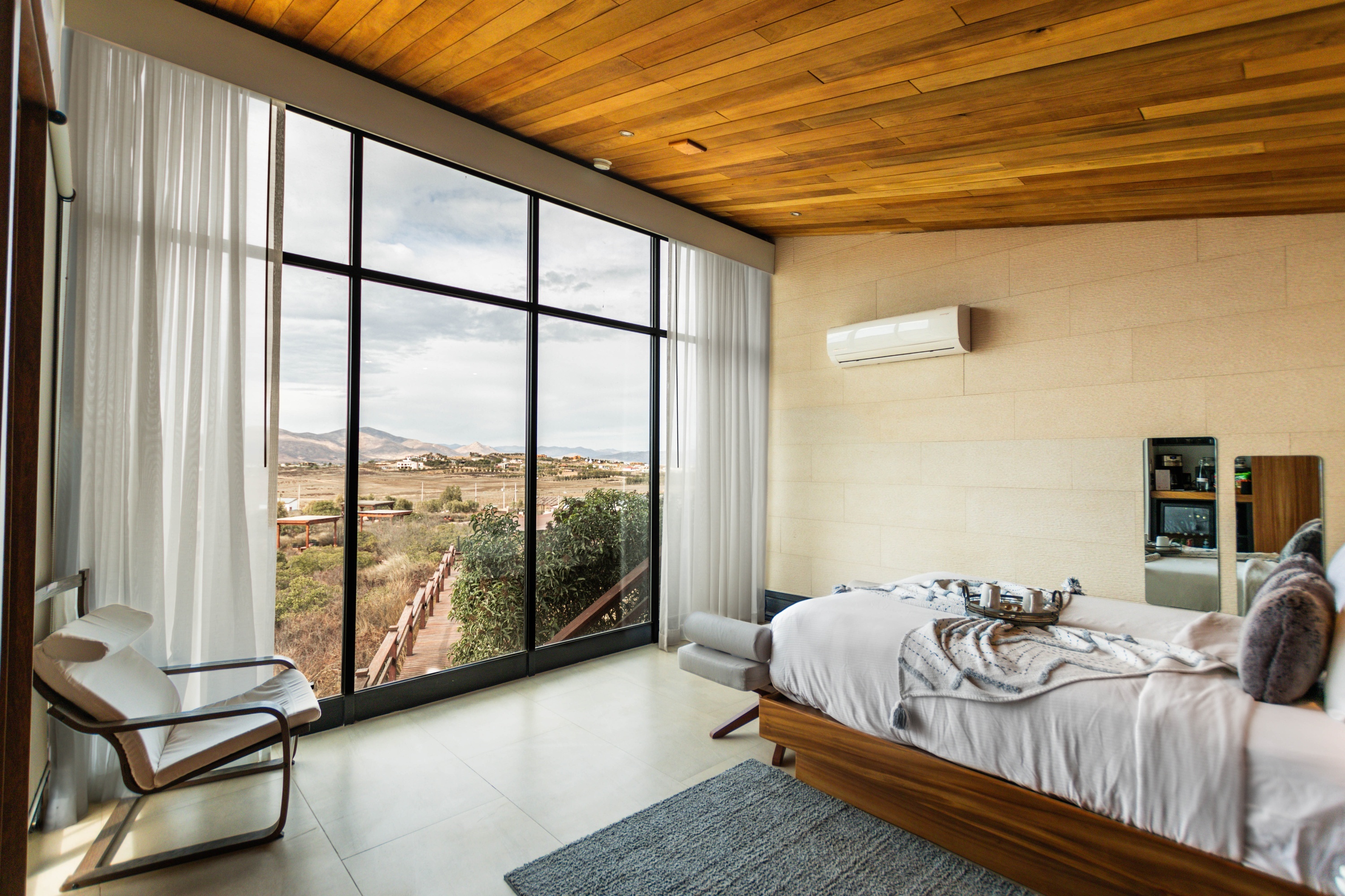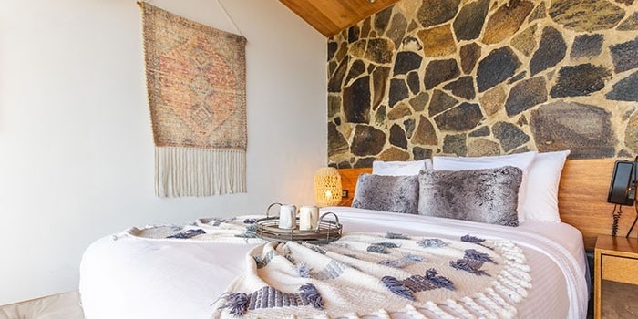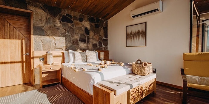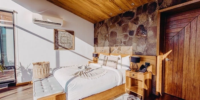 1 cama king size, 1 sofá cama, barra con bancos, balcón, patio con fogatero