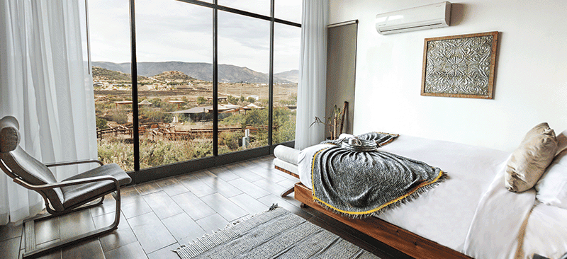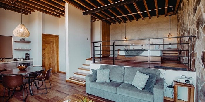 1 cama queen size, frigobar, microondas, balcón, fogatero privado, vista a la montaña